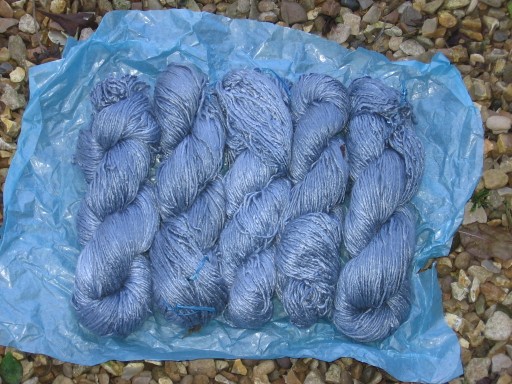 Squares of silk, cashmere, cotton, pure new wool and alpaca (and one or two 'man-made-fibres'). Lace-weight, sock-weight, double knit and even - dare I say this - dishcloth cotton!!!
